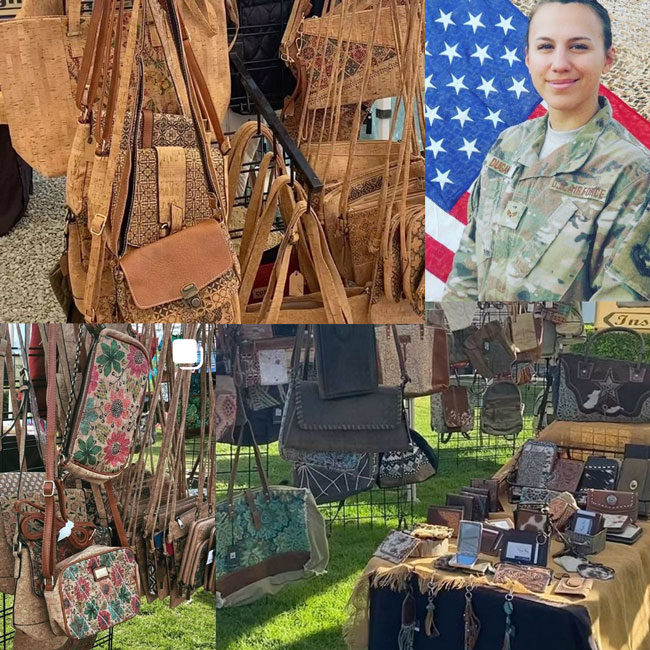 Cork Tree Gifts provides repurposed handbags made with repurposed military canvas. Liners are constructed from recycled plastic bottles.